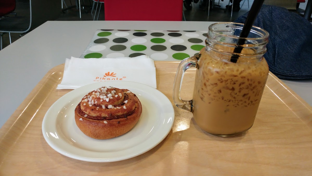 Hyvät oli kahvit ja pullat + sämpylä. Ihan hyvä valikoima niin suolaista kuin makeaakin. Jokinlaista lounastakin taitaa olla tarjolla. Mukava ystävällinen palvelu.
